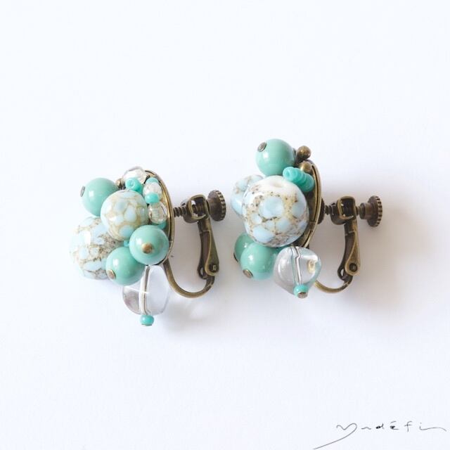 yy003_ヴィンテージ・イヤリング <Green Turquoise>
