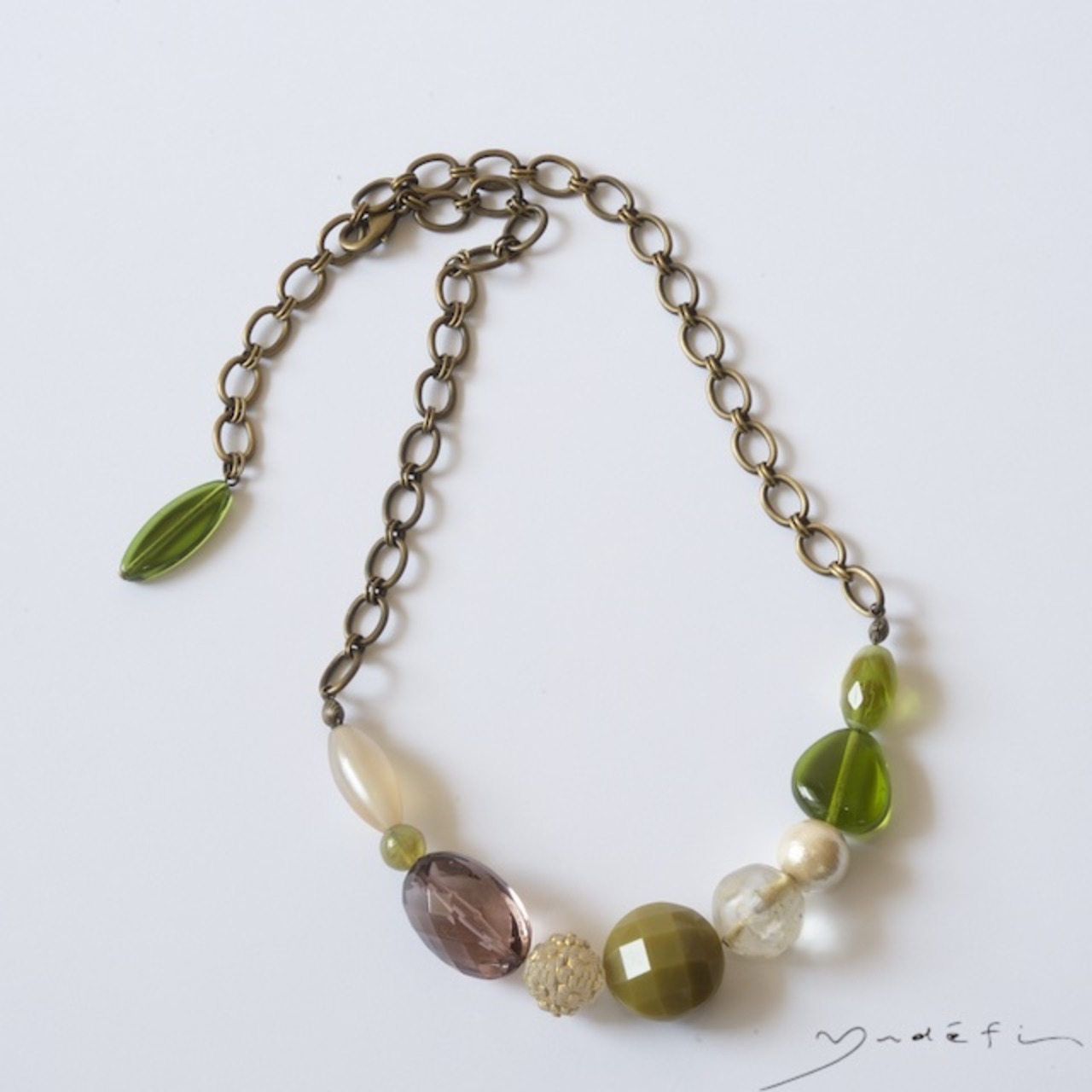 yn007_ヴィンテージ・ネックレス<Olive>