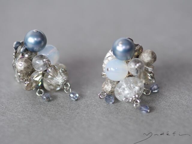 yy013_コンテンポラリー・イヤリング<Blue/Grey/Pearl>