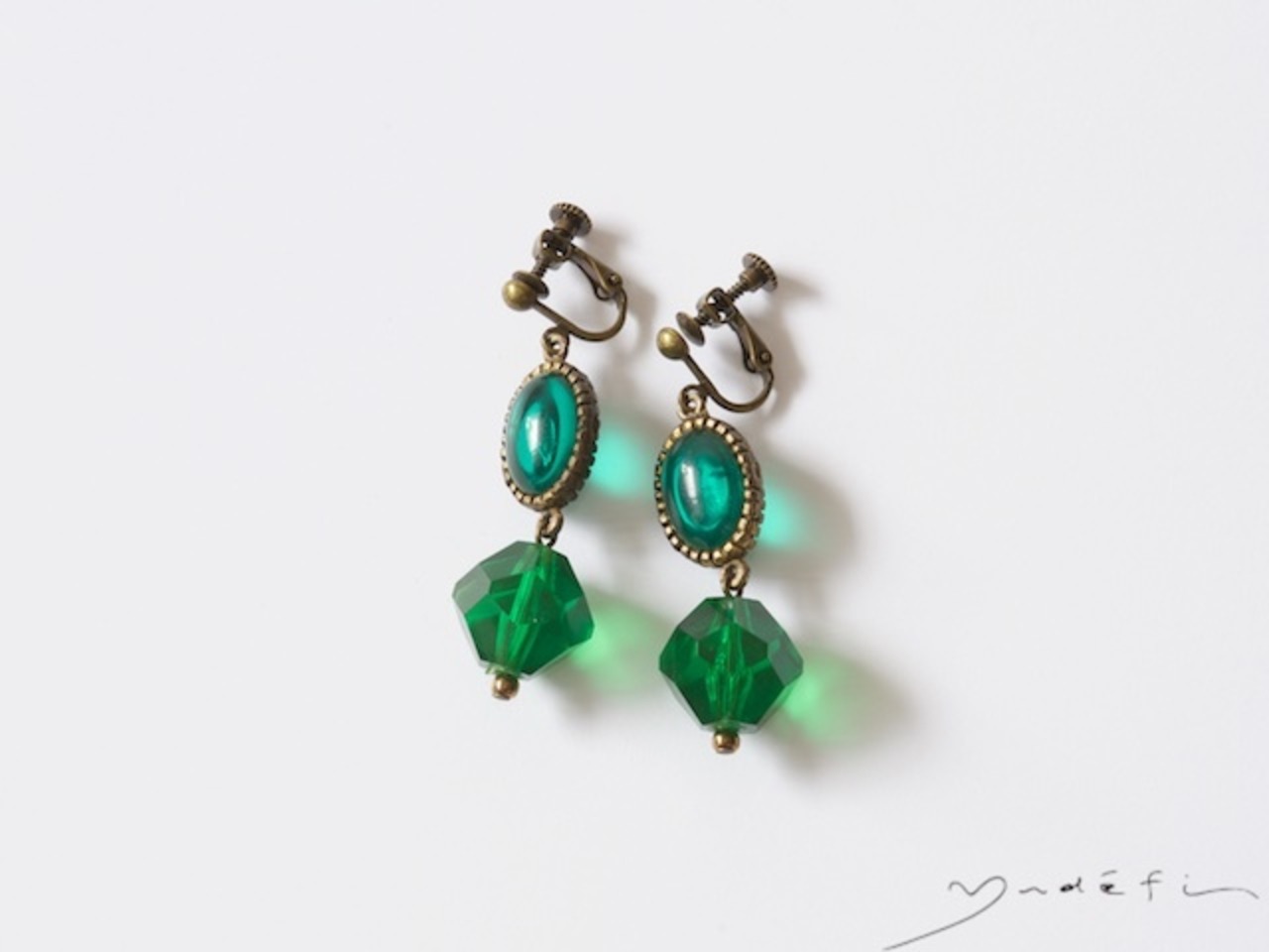 yy016_ヴィンテージ・イヤリング<Emerald Green>