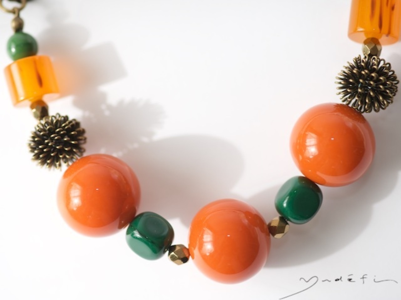 素材;フランス製ヴィンテージアクリルビーズ、チェコ製ビーズ、メタルパーツ