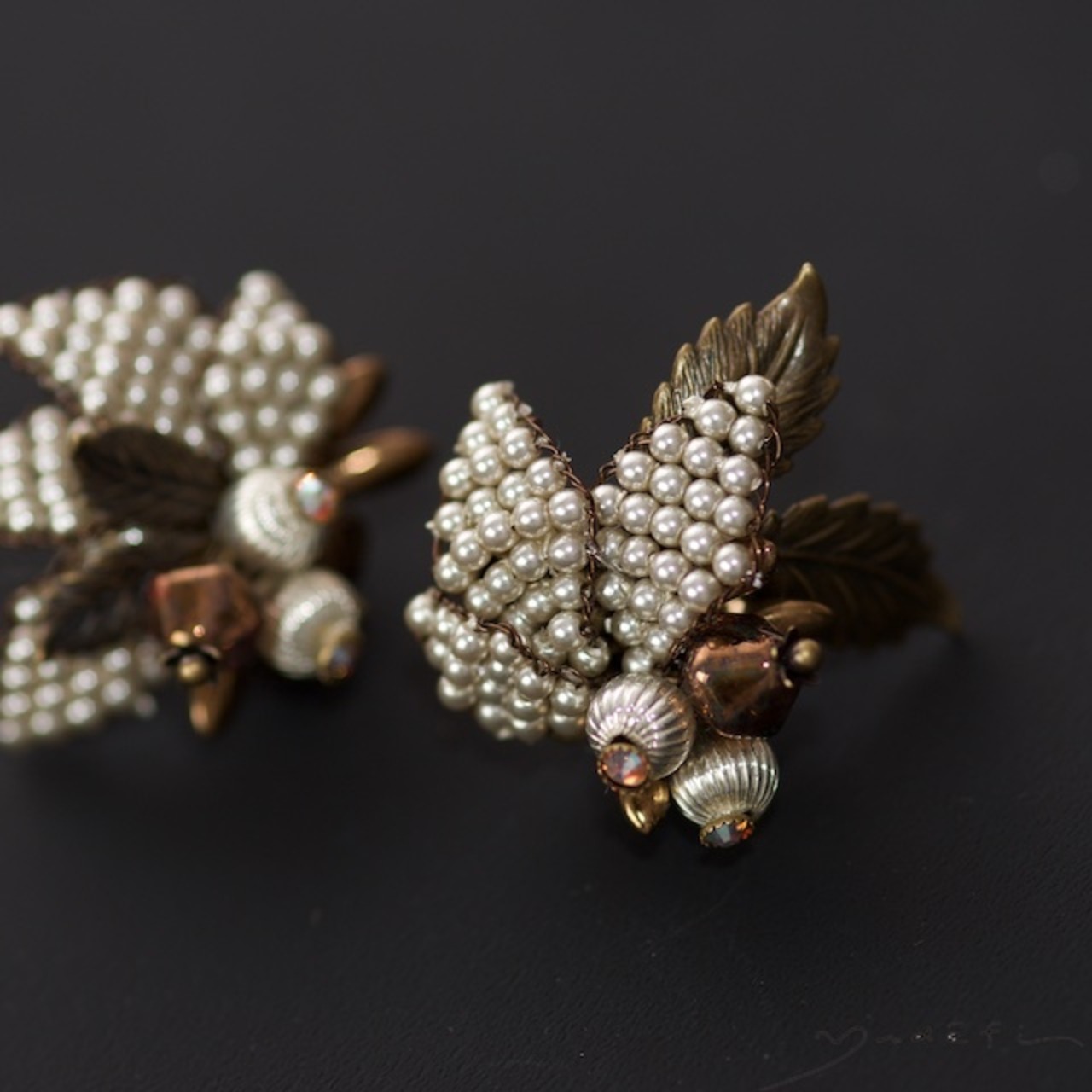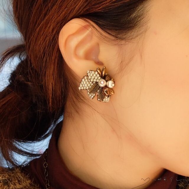素材;ビンテージビーズ、アクリルパール、チェコガラス、メタルパーツ